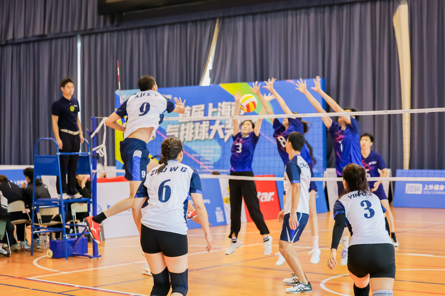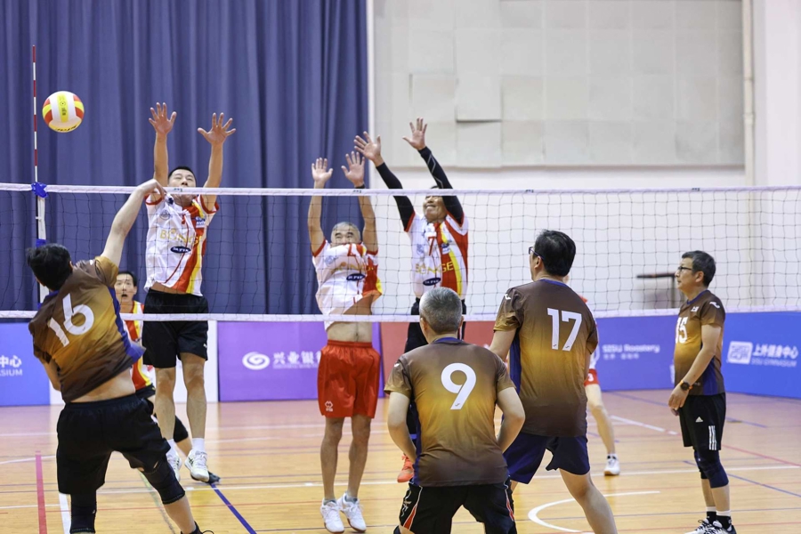 扣球声、哨声、掌声、欢呼声、声声入耳,一次次精彩的暴扣与滚翻救球,点燃了沪上全民健身的秋日热情。这个周末,上海外国语大学虹口校区健身中心奏响悦耳的排球之歌。2025首届上海市气排球大奖赛在这里举行,两个比赛日里,来自全市16个区的34支代表队、近320名运动员,在53场激烈对决中决出五大组别前三名。